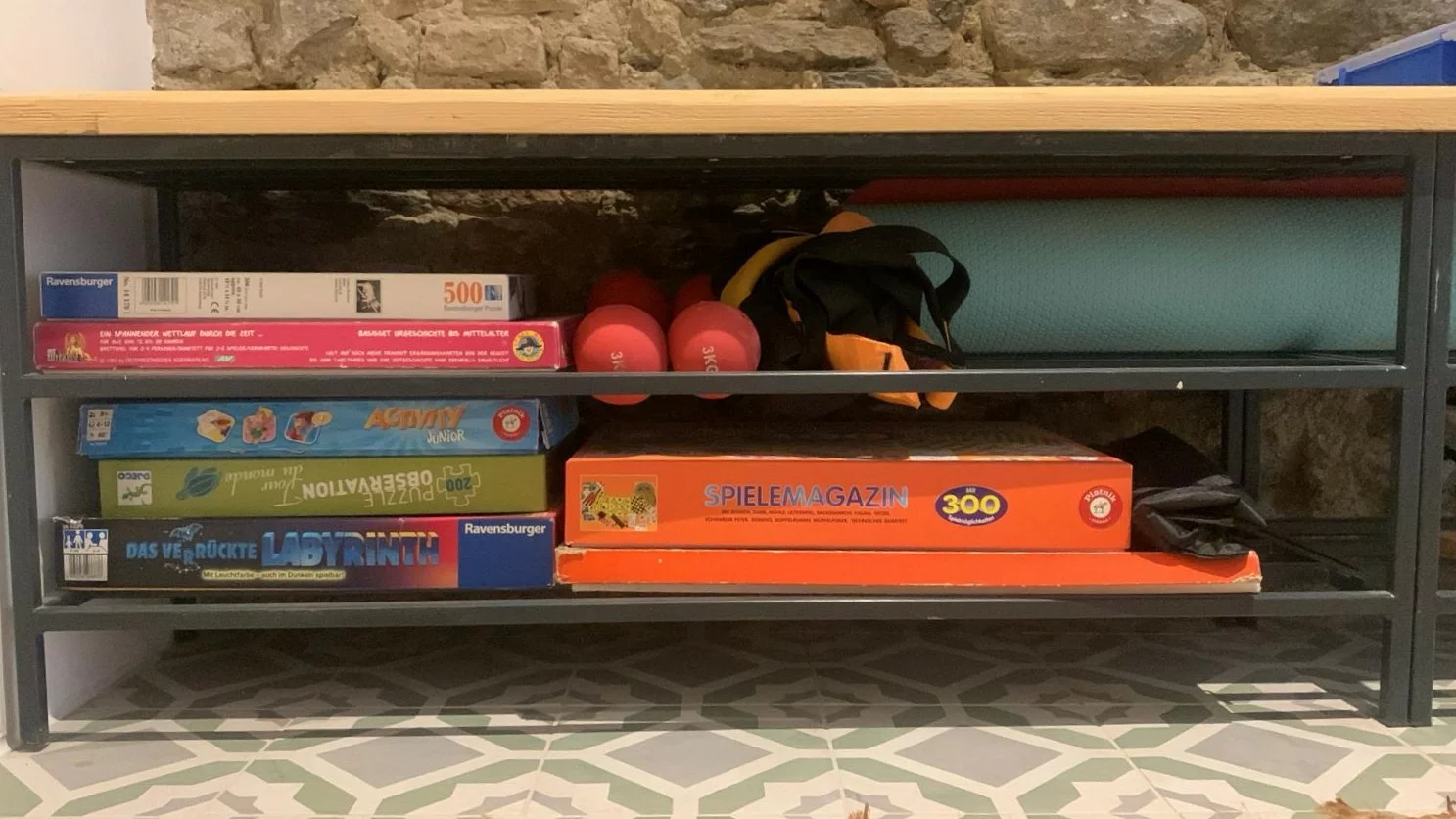 Gemeinschaftsflächen im Inneren verfügen über Abstellräume mit Waschmaschinen und zwei Trocknern sowie Nischen mit zahlreichen Bücher, Spiele & einige (kleinere) Turnutensilien, Notfalls-Kit...