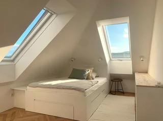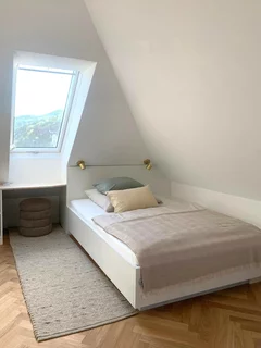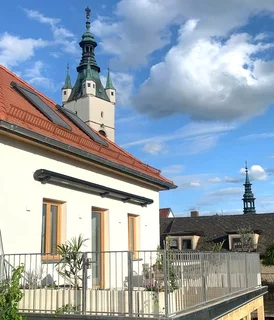 Amazing View is a stylish maisonette with a great terrace. The huge bright eat-in kitchen is connected to the spacious sunny terrace, which offers an amazing panoramic view of Krems and the Danube valley. There are two small bedrooms (beds 140/200), a bathroom with tube and shower and a storage room.