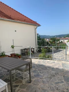sunny garden terrace with lots of herbs!